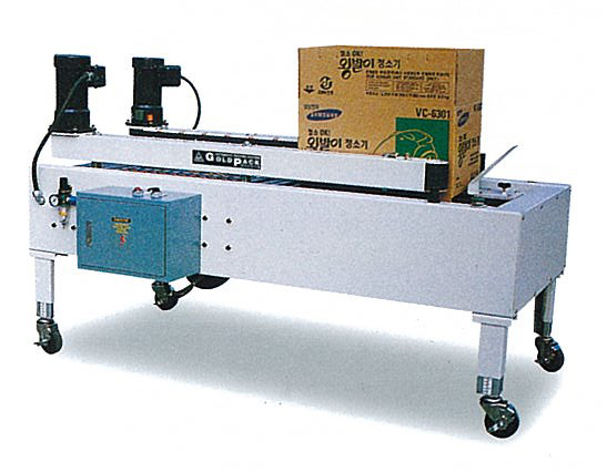 Random Case Former(GM-500CFR) 에어실린더에 의해 자동으로 박스의 하면 접지가 이루어지고 사이드벨트에 의해 테이핑과 동시에 배출되는 기종으로 많은 양의 박스를 포장 준비 상태로 적재할 경우에 적합한 기종입니다.