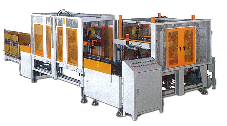 - I-형 테이핑기 (GM-705TFA)와 모서리 테이핑기(GM-706TH)를 연결한 무인자동 박스테이핑 라인